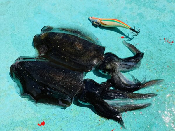 今回のMVPルアーはこちら!胴体にイカに噛まれたのか傷を負っている